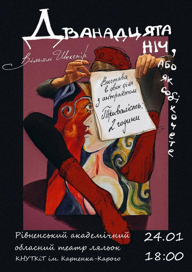 «Дванадцята ніч» - блискуча комедія плутанини, де кохання змінює обличчя, ідентичності плутаються, а випадок керує долями. Після корабельної аварії герої потрапляють у світ масок, жартів і небезпечної пристрасті, де кожен шукає себе - і любов.