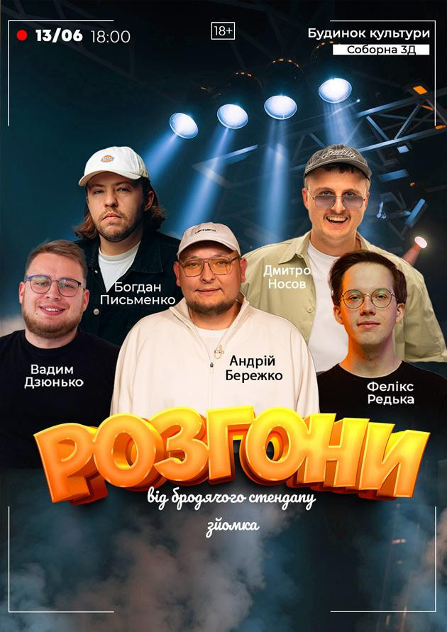 Розгони - імпровізаційний формат де коміки розповідають історії , ідеї для жартів і разом доводять їх до готових комедійних монологів.