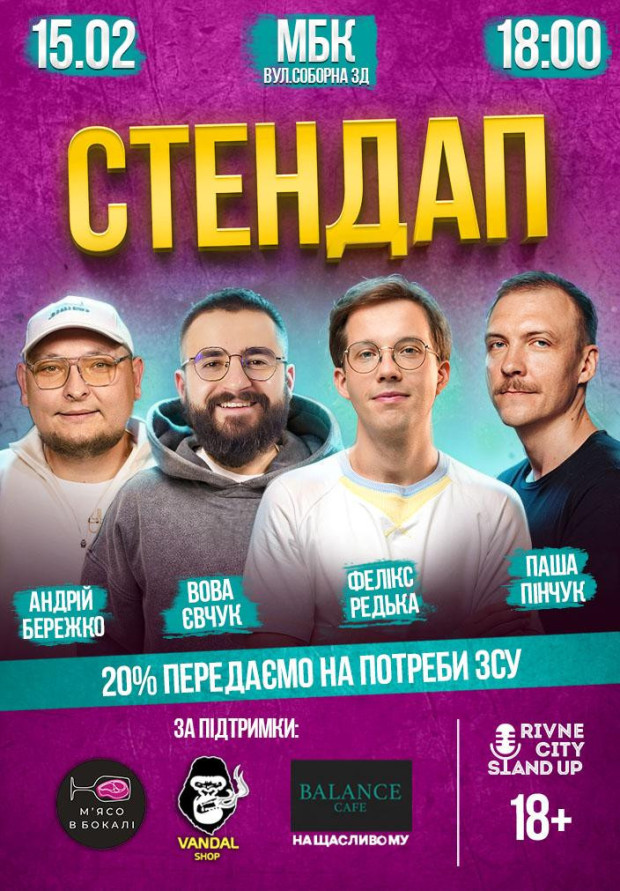 15 лютого ВЕЛИКИЙ СТЕНДАП у Рівному!